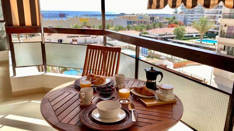 Vistas al mar Jardines Canarios Los Cristianos ist eine moderne Ferienwohnung direkt am Strand, die einen Außenpool und einen Poolblick bietet. Die Unterkunft verfügt über einen Balkon, kostenlose Privatparkplätze und kostenfreies WLAN. Die Ferienwohnung ist mit zwei Schlafzimmern, einem Badezimmer, Bettwäsche und Handtüchern ausgestattet.