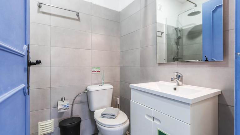 Die Ferienwohnung besteht aus einem Schlafzimmer, einer Küche, die mit einem Kühlschrank und einer Mikrowelle ausgestattet ist, sowie einem Badezimmer mit Dusche, Haartrockner und Waschmaschine.