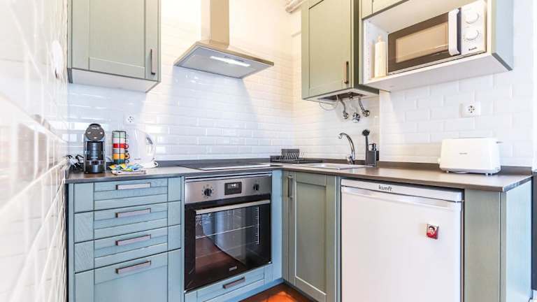 Die Ferienwohnung bietet ein Schlafzimmer sowie eine voll ausgestattete Küche. Handtücher und Bettwäsche sind im Preis inbegriffen.