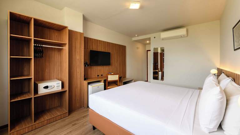 Die Zimmer verfügen über eine Klimaanlage, ein Doppelbett, einen Safe, eine Minibar und einen Schreibtisch. Zur Unterhaltung stehen ein Telefon, ein TV-Gerät mit Satelliten-/Kabelempfang sowie kostenloses WLAN zur Verfügung. Die Badezimmer sind mit einer Dusche und einer Badewanne sowie einem Haartrockner ausgestattet. In den meisten Zimmern gehört ein Balkon zur Standardausstattung. Das Hotel bietet auch rollstuhlgerechte Zimmer sowie Nichtraucherzimmer an.