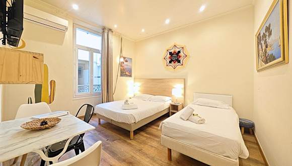 Die Unterkunft befindet sich im Zentrum von Cannes, in der Nähe mehrerer Strände, darunter der Plage de la Croisette, der Strand Plage du Palais des Festivals und der Strand Midi Plage. Der Palais des Festivals et des Congrès ist 600 Meter entfernt, während das Internationale Museum der Parfümerie 18 Kilometer voneinander entfernt liegt. Der nächstgelegene Flughafen ist der Aéroport Nice Côte d’Azur, der etwa 26 Kilometer entfernt ist.