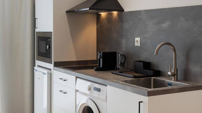 Die Unterkunft verfügt über eine voll ausgestattete Küchenzeile, die Annehmlichkeiten wie einen Kühlschrank, eine Mikrowelle, eine Herdplatte, eine Kaffeemaschine und einen Wasserkocher umfasst, um den Gästen eine Selbstverpflegung zu ermöglichen.