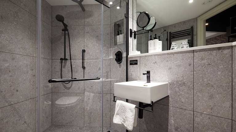 Die Verpflegung umfasst ein Frühstücksbuffet, das auch à la carte oder als kontinentale Option angeboten wird. Im hauseigenen Restaurant werden amerikanische, britische und asiatische Gerichte serviert. Zudem sind vegetarische, milchfreie und halal-zubereitete Optionen auf Anfrage erhältlich.