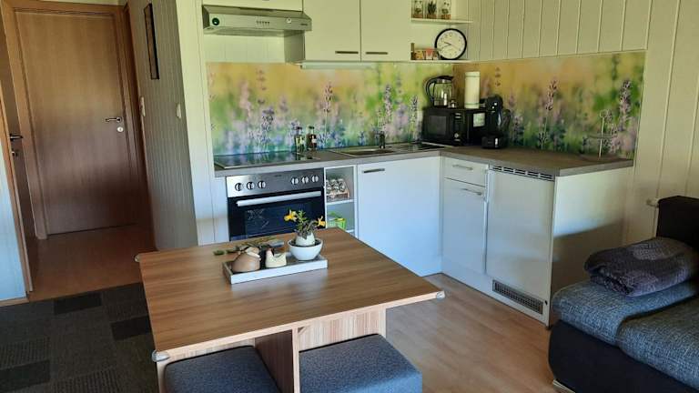 Die Ferienwohnung umfasst 1 Schlafzimmer, ein Wohnzimmer und eine voll ausgestattete Küche, die mit einem Kühlschrank und einer Kaffeemaschine ausgestattet ist. Des Weiteren gibt es 1 Badezimmer mit Dusche. Handtücher und Bettwäsche sind in der Unterkunft vorhanden.