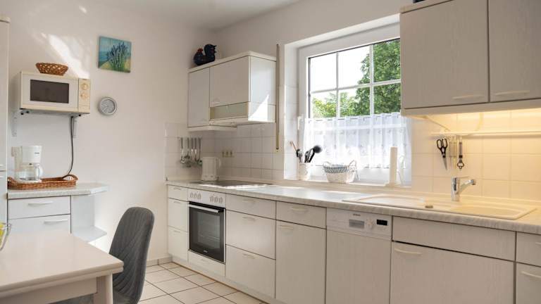 Das Ferienhaus ist eingerichtet mit einem Satelliten-TV und bietet eine gut ausgestattete Küchenzeile.