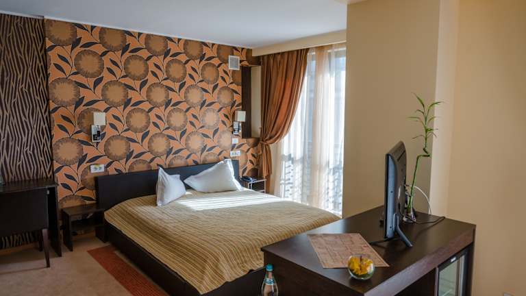 Die Zimmer im Hotel sind komfortabel eingerichtet und verfügen über eine Klimaanlage, Heizung und einen Balkon oder eine Terrasse. Die Gäste können den Zimmerservice nutzen und haben Zugang zu WLAN und Kabel-TV. Ein Safe und ein Kühlschrank sind ebenfalls vorhanden. Im Badezimmer finden die Gäste eine Dusche, eine Badewanne und einen Haartrockner.