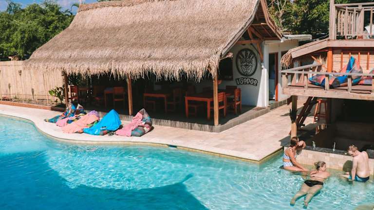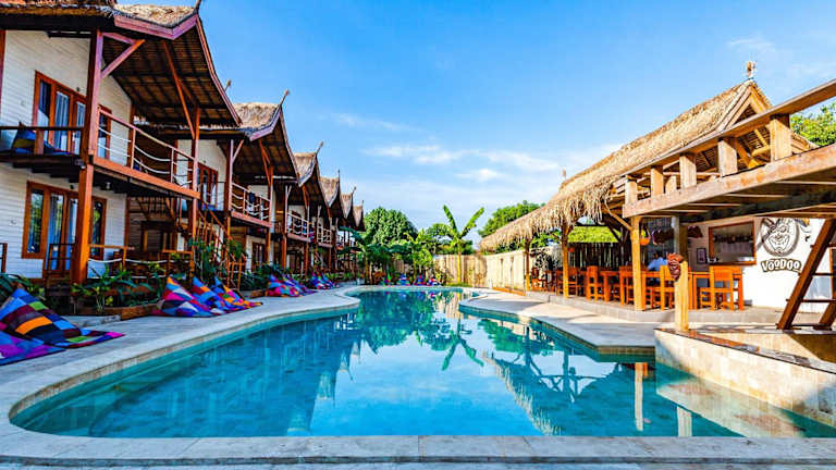 Neben dem kulinarischen Angebot bietet das Voodoo Gili auch einen Außenpool, in dem Sie sich erfrischen können. Entspannen Sie auf der Terrasse oder erkunden Sie die grünen Gärten des Hotels. In der Umgebung gibt es zahlreiche Möglichkeiten für Freizeitaktivitäten wie Schnorcheln, Tauchen oder Fahrradfahren. Die Mitarbeiter des Hotels stehen Ihnen gerne bei der Organisation von Ausflügen und Aktivitäten zur Verfügung, damit Sie das Beste aus Ihrem Aufenthalt herausholen können.