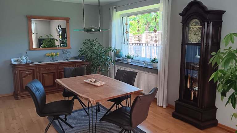 Die Unterkunft befindet sich in Risum-Lindholm, in der Nähe der Schiffsverbindungen zu den Inseln Sylt, Föhr und Amrum. Die Umgebung bietet eine ruhige Atmosphäre, während sich wichtige Punkte wie die Fußgängerzone von Flensburg, der Hauptbahnhof und das Flensburger Schifffahrtsmuseum in einem Umkreis von etwa 43 km befinden.