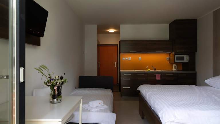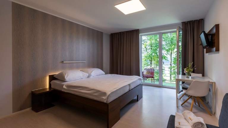 Jedes Zimmer in der Vranovská pláž - Holiday park ist mit einem Kleiderschrank, einem Flachbild-TV, einem eigenen Badezimmer sowie Bettwäsche und Handtüchern ausgestattet. Alle Zimmer verfügen über einen Wasserkocher, während einige Zimmer mit einem Balkon und/oder Seeblick ausgestattet sind. Darüber hinaus bieten alle Gästezimmer Zugang zu einem Kühlschrank.