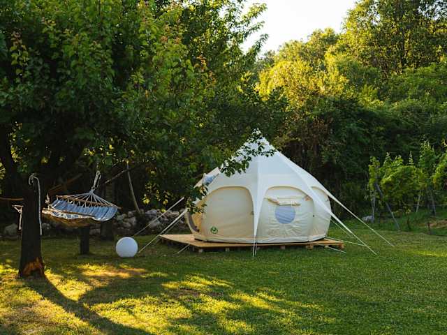 Vrelo Glamping ist eine Zelt-Lodge, die Übernachtungsmöglichkeiten mit kostenfreiem WLAN und Bergblick bietet. Die Unterkunft verfügt über saisonale Außeneinrichtungen wie einen Pool, einen Garten sowie eine Terrasse. Es wird ein Zimmerservice angeboten und ein kostenloser Privatparkplatz ist vorhanden. Zudem sind keine Junggesellen- oder ähnliche Feiern erlaubt. Die Unterkunft wird von einem privaten Gastgeber betrieben und hat spezielle Anforderungen für den Check-in.