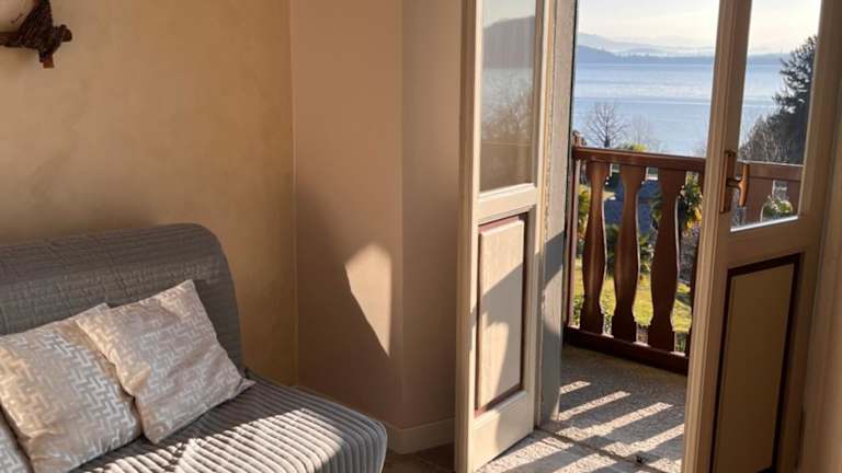 Die Unterkunft befindet sich in Lesa und bietet eine malerische Umgebung mit Blick auf den See. Die Gegend ist ideal für verschiedene Aktivitäten im Freien, einschließlich Wandern und Skifahren.