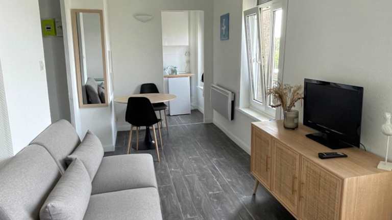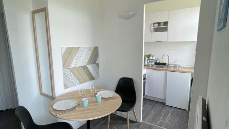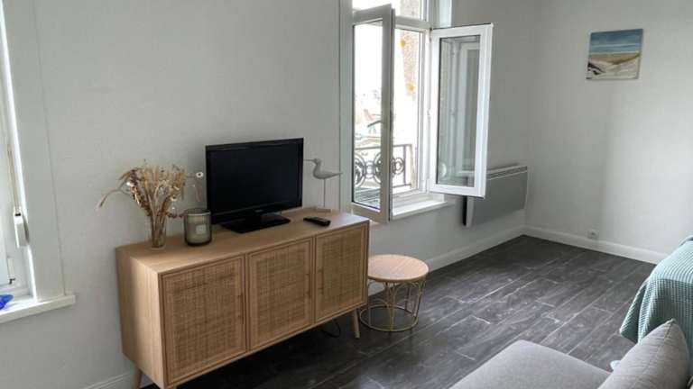 Die Ferienwohnung Studio Wimereux vue dégagée, proche mer, exposition sud bietet einen Panoramablick auf die Stadt und zeichnet sich durch ihre Nähe zum Meer aus. Die Unterkunft ist praktisch und funktional eingerichtet.