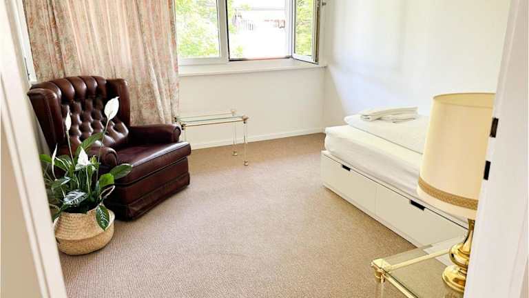Das Apartment bietet drei Schlafzimmer, eine voll ausgestattete Küche mit Kühlschrank und Geschirrspüler sowie eine Waschmaschine. Die Sanitäranlagen umfassen ein Badezimmer mit Haartrockner. Handtücher und Bettwäsche werden bereitgestellt. Die Unterkunft verfügt außerdem über WLAN und Gartenmöbel.