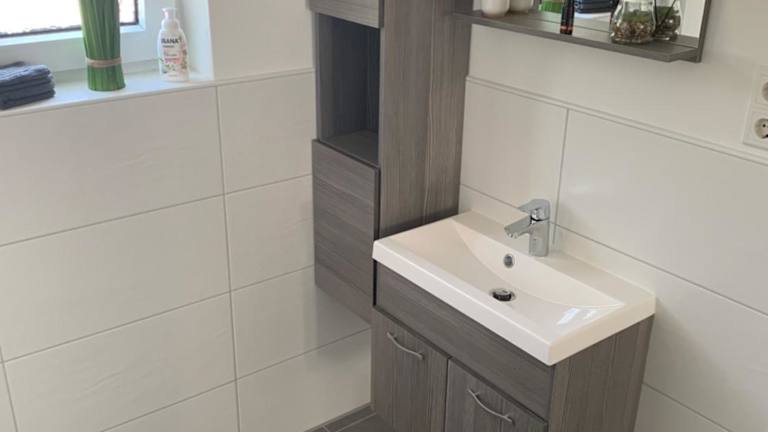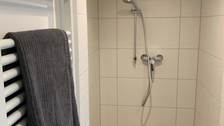 Die Ferienwohnung verfügt über ein Schlafzimmer, ein Wohnzimmer mit einem Flachbild-TV und ein Badezimmer mit Dusche und Haartrockner.