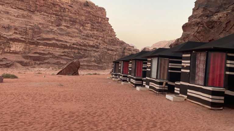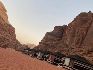 Das Wadi Rum Secrets Camp liegt in der beeindruckenden Wüstenlandschaft von Wadi Rum. Von hier aus können Sie die natürliche Schönheit der Umgebung erkunden und die spektakulären Felsformationen, Sanddünen und atemberaubenden Sonnenuntergänge erleben. Die Stadt Wadi Rum ist ebenfalls in der Nähe und bietet eine Vielzahl von Sehenswürdigkeiten, Restaurants und Einkaufsmöglichkeiten.