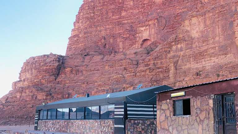 Das Desert Stars Rum Camp liegt in der beeindruckenden Wüstenlandschaft von Wadi Rum. Hier können Sie die Schönheit der Natur und die Ruhe der Wüste erleben. Die Unterkunft bietet einen herrlichen Blick auf die umliegenden Berge und ist der perfekte Ausgangspunkt für Erkundungen in der Region. Der internationale Flughafen King Hussein ist nur 60 km entfernt und ermöglicht eine bequeme Anreise.