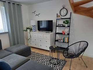 Die Ferienwohnung umfasst 1 Schlafzimmer und ein Wohnzimmer. Sie ist mit einer voll ausgestatteten Küchenzeile ausgestattet, die einen Kühlschrank und eine Kaffeemaschine beinhaltet. Zudem gibt es ein Badezimmer mit Dusche und Haartrockner. Handtücher und Bettwäsche werden bereitgestellt.