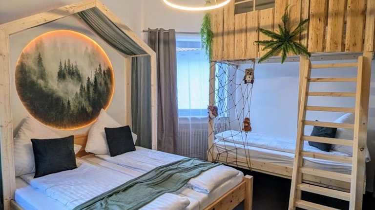 Die Wald Villa Schönau befindet sich in Schönau an der Brend in der bayerischen Region, umgeben von einer malerischen Naturlandschaft. In der Nähe liegt die Kreuzbergschanze, die in 13 km erreicht werden kann. Zu weiteren Sehenswürdigkeiten zählen die Esperantohalle Fulda und das Schlosstheater Fulda, die etwa 46 bzw. 47 km entfernt sind. Der nächstgelegene Flughafen ist der Flughafen Erfurt-Weimar, der sich 132 km von der Unterkunft befindet.