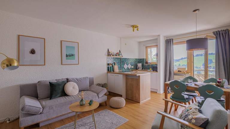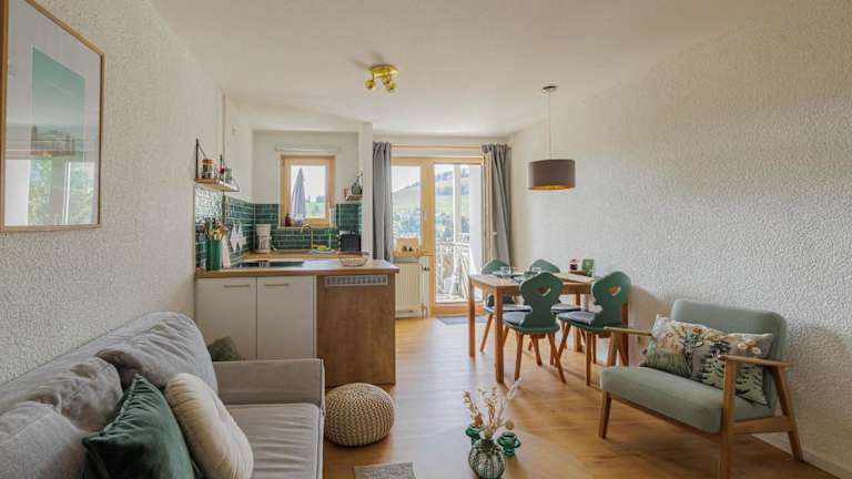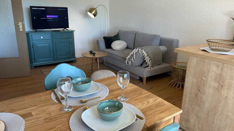 Die Ferienwohnung besteht aus einem Schlafzimmer, einem Wohnzimmer und einer gut ausgestatteten Küchenzeile mit Kühlschrank und Geschirrspüler. Zur Ausstattung gehören ein Flachbild-TV sowie ein Badezimmer mit Dusche. Handtücher und Bettwäsche werden bereitgestellt. Die Unterkunft bietet zudem eine Terrasse mit Bergblick.