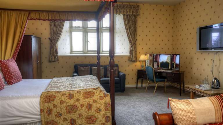 Die Zimmer sind mit einem Doppelbett, einem Schreibtisch, einer Tee-/Kaffeemaschine, einem Flachbildfernseher und kostenlosem WLAN ausgestattet. In den Badezimmern stehen Haartrockner und Kosmetikartikel zur Verfügung. Für besondere Anlässe sind einige Zimmer mit einem Himmelbett und einem Whirlpool ausgestattet. Rollstuhlgerechte Zimmer sind ebenfalls verfügbar.