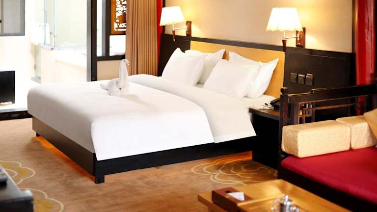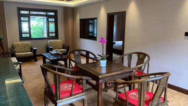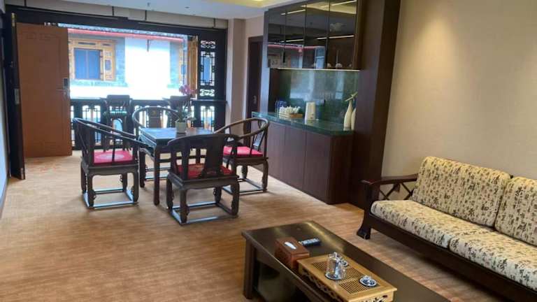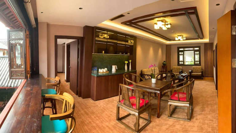 Die Zimmer im Lijiang Wangfu Hotel sind luxuriös und mit orientalischen Möbeln eingerichtet. Sie bieten Ihnen einen Flachbild-TV, kostenfreien Internetzugang und eine Minibar. Im eigenen Badezimmer finden Sie eine Badewanne, Bademäntel und Hausschuhe.