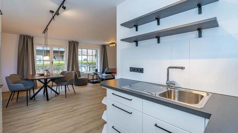 Die Ferienwohnung besteht aus zwei Schlafzimmern und bietet einen TV sowie eine voll ausgestattete Küche. Diese ist mit einem Kühlschrank, einem Geschirrspüler, einer Waschmaschine, einem Ofen und einer Herdplatte ausgestattet. Handtücher und Bettwäsche werden bereitgestellt.