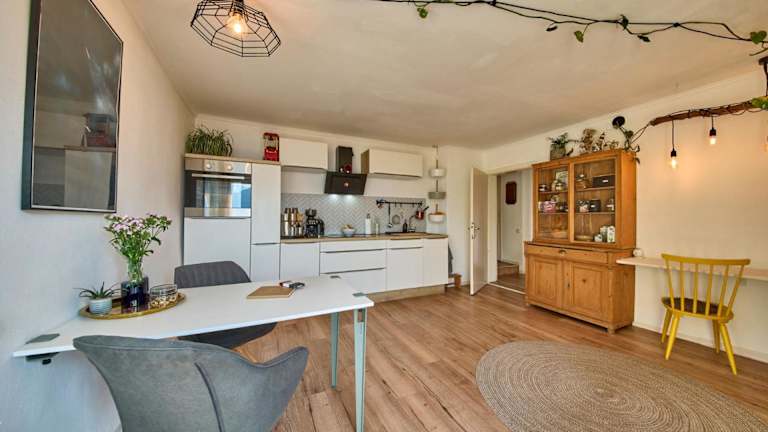 Die Ferienwohnung verfügt über eine gut ausgestattete Küche mit Kühlschrank, Geschirrspüler und Ofen. Es gibt ein Wohnzimmer mit Sitz- und Essbereich, zwei Schlafzimmer sowie ein Badezimmer, das sowohl über eine Dusche als auch über eine Badewanne verfügt. Handtücher und Bettwäsche werden bereitgestellt.