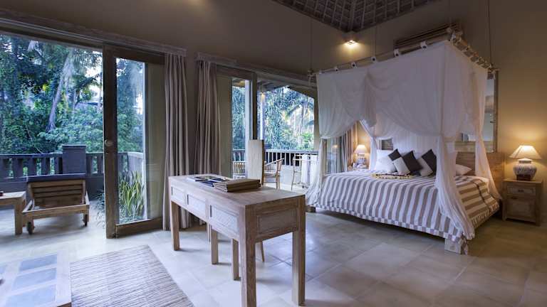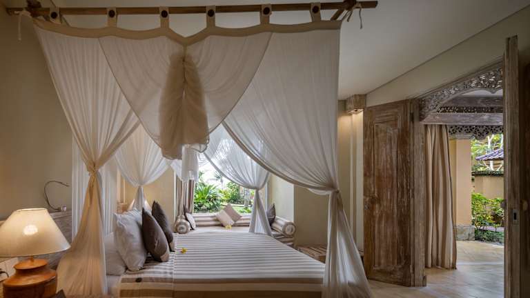 Das Resort besteht aus einem 2-stöckigen Haupthaus und 9 Nebengebäuden. Es bietet insgesamt 16 Zimmer, die im traditionellen balinesischen Stil gestaltet sind. Jedes Zimmer verfügt über einen eigenen Balkon und ein Badezimmer mit einer tiefen Badewanne. Zur Ausstattung gehören auch ein Safe, eine Minibar und kostenfreies WLAN.