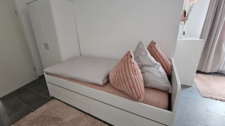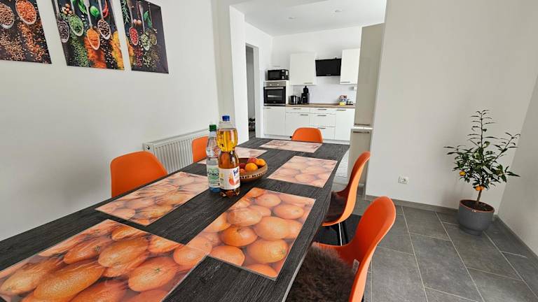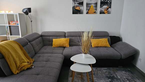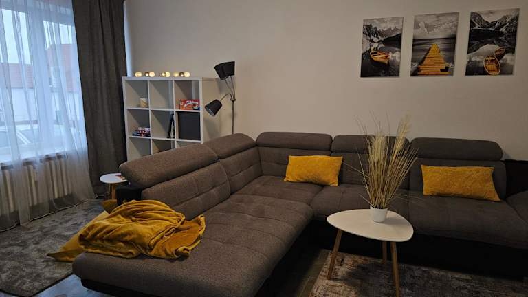 Die Ferienwohnung umfasst 2,5 Zimmer im Erdgeschoss und verfügt über eine Terrasse mit Stadtblick. Zur Ausstattung gehören ein Schlafzimmer, ein Wohnzimmer, ein Flachbild-TV sowie eine gut ausgestattete Küche mit Kühlschrank und Geschirrspüler. Ein Badezimmer mit Dusche ist ebenfalls vorhanden. Handtücher und Bettwäsche werden zur Verfügung gestellt.