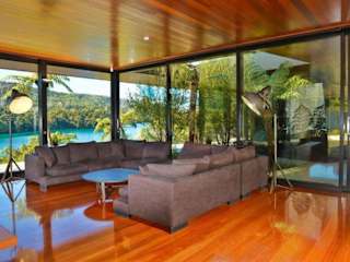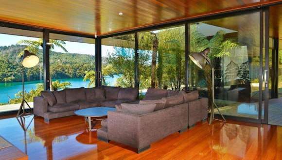 Das Waterfall Retreat ist ein exklusiver und luxuriöser Rückzugsort inmitten eines 4 Hektar großen privaten Busches in Neuseeland. Mit seinem architektonischen Design und raumhohen Glaswänden bietet das Retreat atemberaubende Ausblicke auf die umliegende Natur. Es bietet Platz für intime Gruppen von bis zu zwei Personen oder größere Gruppen von bis zu 16 Personen. Jedes der fünf Schlafzimmer verfügt über ein eigenes Marmorbad, und der Hauptpavillon bietet einen großen Tisch für gesellige Zusammenkünfte. Das Waterfall Bay - Picton liegt in der Waterfall Bay und ist nur mit dem Boot erreichbar. Das Ferienhaus bietet einen Whirlpool und einen herrlichen Blick auf das Meer und die Berge. Ein kostenfreier Wassertaxitransfer von Picton zur Waterfall Bay wird bei der An- und Abreise angeboten.