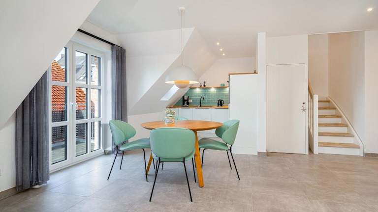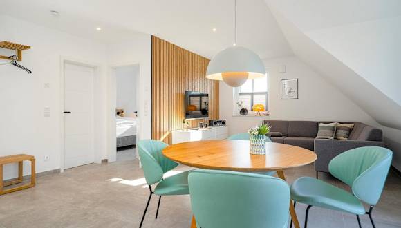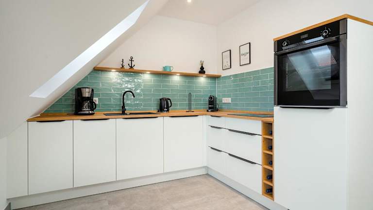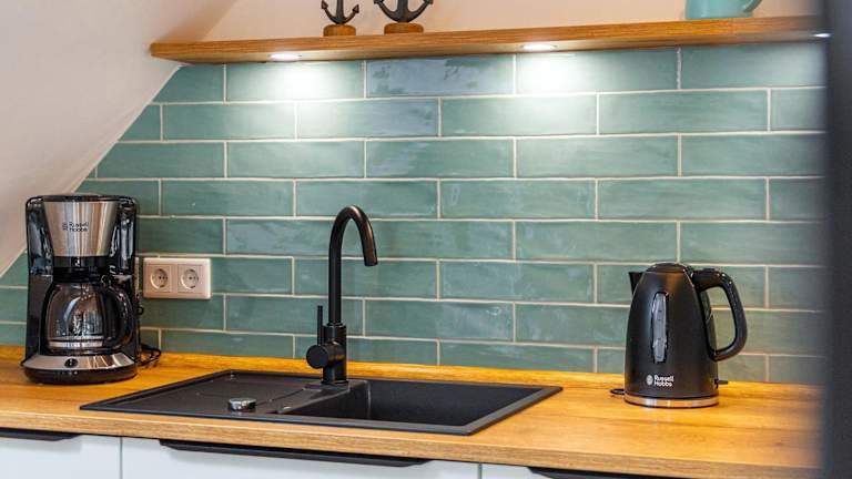 Die Ferienwohnung verfügt über ein Schlafzimmer, eine voll ausgestattete Küche mit Kühlschrank und Geschirrspüler, sowie ein Badezimmer mit Dusche, Haartrockner und Waschmaschine. Des Weiteren ist ein TV verfügbar. Allergikerfreundliche Zimmer sind ebenfalls vorhanden.