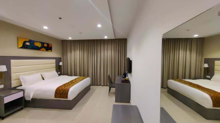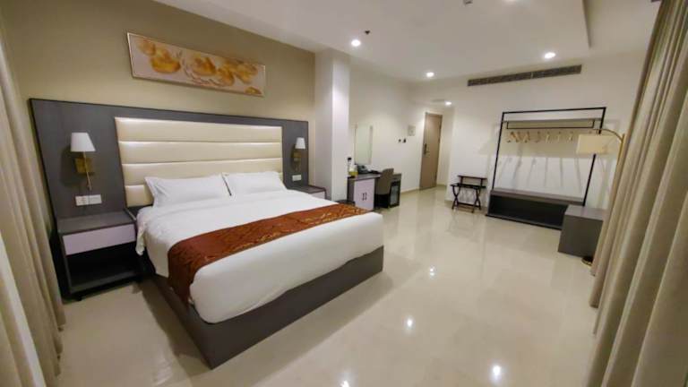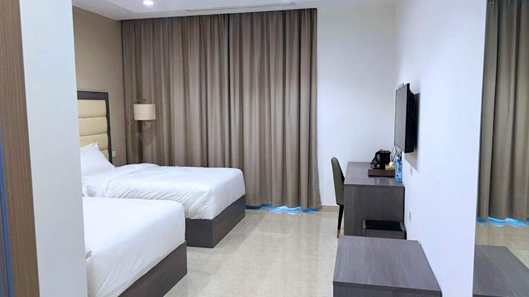 Das Wave View Hotel ist eine Nichtraucherunterkunft und bietet eine Vielzahl von Annehmlichkeiten. Die Zimmer sind klimatisiert und verfügen über moderne Annehmlichkeiten wie kostenloses WLAN, einen Zimmerservice und eine 24-Stunden-Rezeption. Ein Spa- und Wellnesscenter steht ebenfalls zur Verfügung, ebenso wie ein kostenloser Privatparkplatz für Gäste mit eigenem Fahrzeug. Es wird darauf hingewiesen, dass Junggesellenabschiede und ähnliche Feiern nicht gestattet sind und das Mindestalter für den Check-in 18 Jahre beträgt.