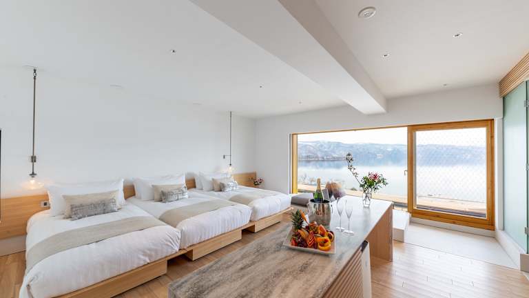Das WE Hotel Toya befindet sich am Ufer des Lake Toya und bietet einen atemberaubenden Blick auf die Umgebung. Der berühmte Architekt Kengo Kuma hat das Hotel mit einem einfachen und modernen Design gestaltet, das natürliche Materialien verwendet. Die Lage des Hotels ermöglicht es den Gästen, verschiedene Aktivitäten in der Umgebung zu unternehmen, darunter Skifahren und Radfahren. Das Hotel bietet auch eine 24-Stunden-Rezeption, um den Gästen jederzeit zur Verfügung zu stehen.