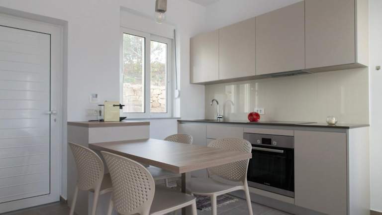 Die Wohneinheiten sind mit einer kompletten Küche ausgestattet, die einen Kühlschrank, einen Ofen, eine Herdplatte, einen Toaster, eine Kaffeemaschine und einen Wasserkocher umfasst. Jedes Zimmer verfügt über ein eigenes Badezimmer mit Dusche und bietet eine Terrasse, die einen Blick auf das Meer ermöglicht.