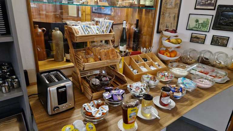 Jeden Morgen wird den Gästen ein reichhaltiges und abwechslungsreiches Frühstücksbuffet serviert, um gestärkt in den Tag zu starten. In den Sommermonaten können die Gäste die eigenen Riesling-Weine des Weinguts Haxel in der Taverne oder draußen auf der begrünten Terrasse im Innenhof probieren. Hier können Sie die regionalen Spezialitäten und Weine genießen und den Tag gemütlich ausklingen lassen.