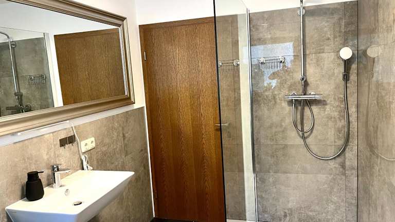 Die Ferienwohnung verfügt über 2 Schlafzimmer, ein Wohnzimmer mit Flachbild-TV, eine gut ausgestattete Küche (einschließlich Kühlschrank und Geschirrspüler) sowie 2 Badezimmer mit Dusche. Es sind Handtücher und Bettwäsche vorhanden, und der Balkon bietet einen Blick auf die Berge.