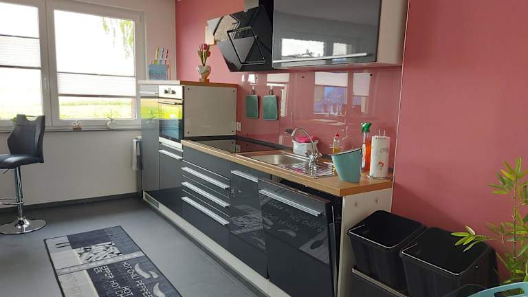 Die Ferienwohnung verfügt über ein Schlafzimmer, ein Badezimmer, Bettwäsche, Handtücher, einen Flachbild-TV, einen Essbereich, eine voll ausgestattete Küche sowie eine Terrasse mit Blick auf den Garten.