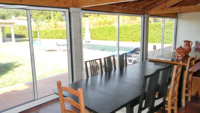 Die Villa befindet sich in Santa Leocadia de Geraz do Lima und bietet einen atemberaubenden Poolblick. In der Umgebung finden Sie zahlreiche Sehenswürdigkeiten wie die Universität Minho - Braga, die etwa 45 km entfernt liegt, und die Werften von Viana do Castelo, die in einer Entfernung von 21 km zu finden sind. Der Golfplatz Golfe de Ponte de Lima ist nur 10 km von der Villa entfernt. Der nächstgelegene Flughafen ist der Flughafen Porto, der etwa 66 km entfernt liegt.