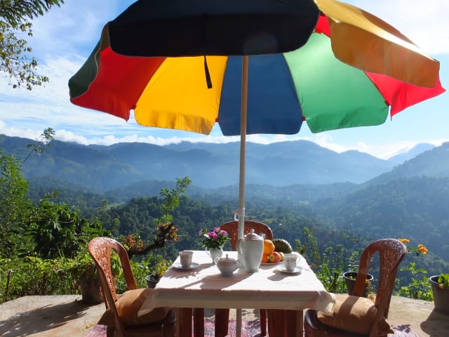 Welikande Villas Hotel and trekking center lies in the foothills of the Knuckles Mountain Range National Park, 25km from the Hill city of Kandy. We have developed a multi site hotel to give all pockets and numbers of people a chance to enjoy this unspoilt part of Central Sri Lanka. Welikande is ideally positioned as a base to explore the center of Sri Lanka by foot, tuk tuk or car. We can offer a single room up to a house that sleeps 10 to 12 people In total there are 9 acres of land with the properties spread around the gardens, orchards and natural mountain side which is criss crossed with pathways leading to the rooms/houses and lead up to the 330 degree view point at the top of our mountain. Welikande is european owned and run and we set high standards not only of our rooms but also our restaurant where we serve your free breakfast european style and your lunch and evening meal which are Sri Lankan rice and curry we try to source all our food locally if we don't grow or produce it ourselves. We run many courses cookery, Ayruveda meditation and massage, pottery in the local pottery village as well as our extensive trekking in the Knuckles Mts. Using Welikande as a base Sigiria, Dambulla, and many of the wildlife safari national parks can be reached in a day with return in the evening. We are family friendly.