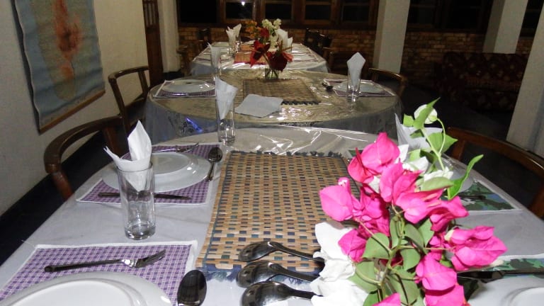 Our restaurant where we serve your free breakfast european style and your lunch and evening meal which are Sri Lankan rice and curry we try to source all our food locally if we don't grow or produce it ourselves.