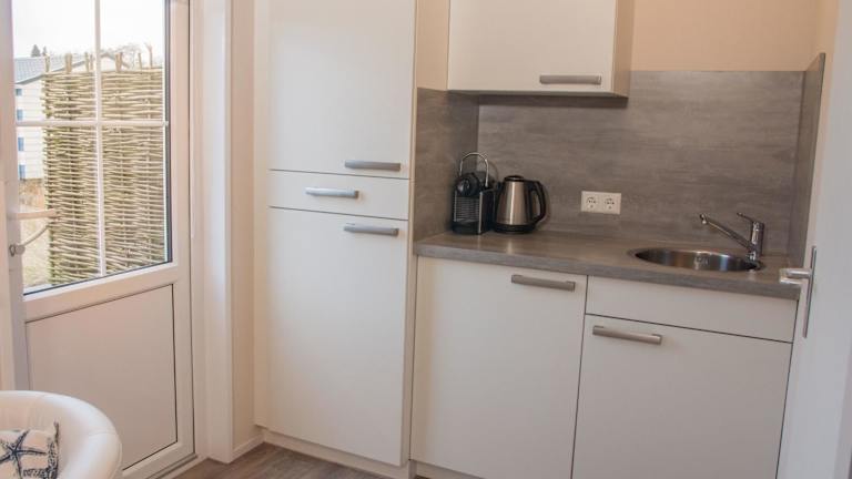Die gut ausgestattete Küche des Ferienhauses bietet einen Kühlschrank, eine Herdplatte, einen Toaster, eine Kaffeemaschine und einen Wasserkocher. Es stehen keine weiteren gastronomischen Angebote zur Verfügung.