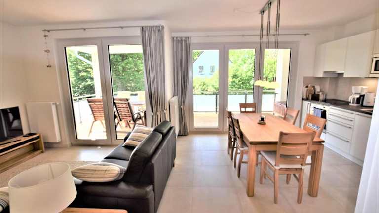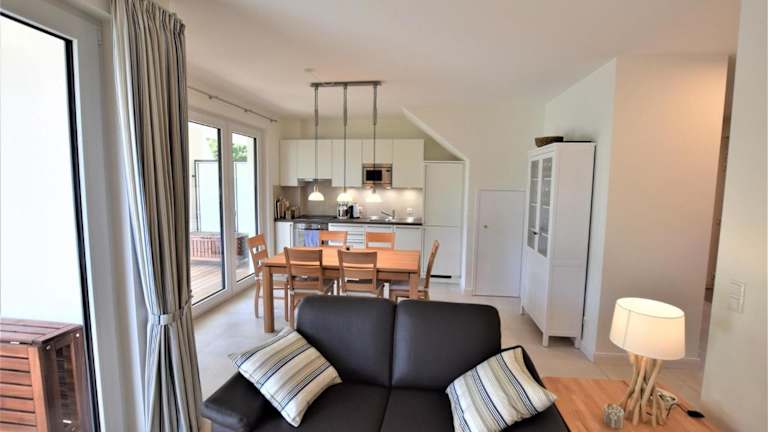 Die Ferienwohnung beinhaltet 3 Schlafzimmer und ist mit einem Flachbild-TV, Kabelkanälen sowie einer voll ausgestatteten Küche ausgestattet. Zur Küchenausstattung gehören ein Kühlschrank, Geschirrspüler, Waschmaschine, Ofen und Mikrowelle.