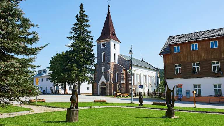 Die Unterkunft befindet sich in Kvilda, in einer Umgebung, die Möglichkeiten zum Wandern, Skifahren und Fahrradfahren bietet.