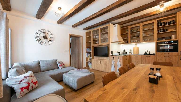 Wellness apartmán Kvilda bietet eine Ferienwohnung mit einem kostenlosen Privatparkplatz. Die Unterkunft zeichnet sich durch eine Terrasse mit Blick auf die Berge aus.