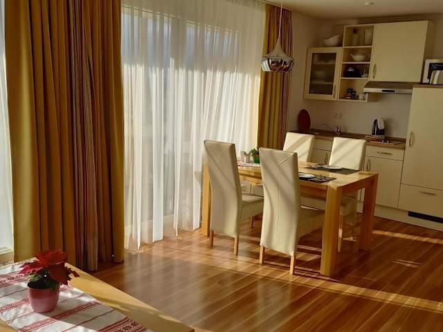 In der Wellness Ferienwohnung mit Bademantelgang zur Therme können Sie sich selbst verpflegen und Ihre Mahlzeiten in der voll ausgestatteten Küchenzeile zubereiten. Alternativ finden Sie in der Umgebung verschiedene Restaurants und Cafés, in denen Sie lokale Spezialitäten und internationale Küche genießen können.