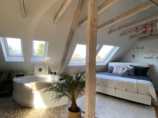 Die Datingsuite in Essen bietet modernen Komfort und eine entspannte Atmosphäre. Genießen Sie die Annehmlichkeiten wie den Whirlpool und das kostenfreie WLAN. Die Unterkunft liegt in einer ruhigen Wohngegend und der Strand am Baldeney Lake ist nur eine kurze Autofahrt entfernt. Perfekt für einen romantischen Kurzurlaub oder einen entspannten Aufenthalt zu zweit.