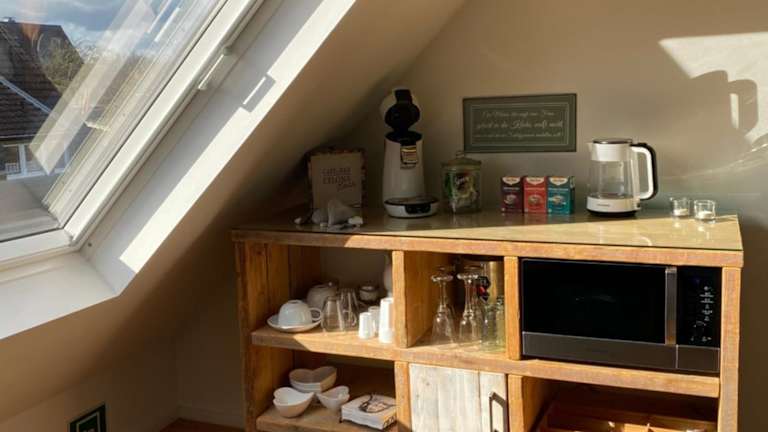 Die Datingsuite bietet moderne Unterkünfte mit einer Küchenzeile, die mit einem Geschirrspüler, einem Backofen und einer Mikrowelle ausgestattet ist. Das eigene Bad bietet Komfort und Handtücher sowie Bettwäsche werden gestellt. Ein Highlight ist die kostenfreie Minibar, die mit Sekt, Wein und kleinen Süßigkeiten bestückt ist. Eine Kaffeemaschine und ein Mini-Backofen stehen ebenfalls zur Verfügung.