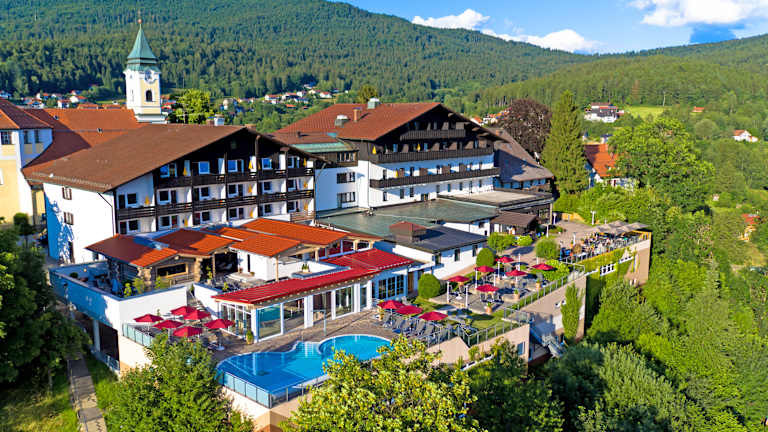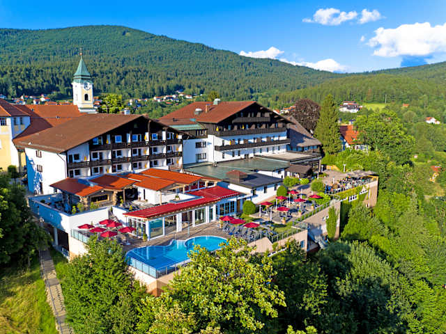 Das 4-Sterne-Hotel Hofbräuhaus in Bodenmais ist eine exklusive Oase der Ruhe und Entspannung, eingebettet in die malerische Landschaft des Bayerischen Waldes. Bei der Gestaltung des Hotels wurde größter Wert auf Qualität und Komfort gelegt, um den Gästen ein unvergessliches Erlebnis zu bieten. Das Hotel verfügt über ein Hallenbad, in dem Gäste das ganze Jahr über schwimmen und entspannen können. Zusätzlich bietet das Hotel ein Außenbecken, ideal für diejenigen, die gerne im Freien schwimmen möchten. Eines der Highlights des Hofbräuhaus ist das Panorama-Warmsprudelbecken, das eine atemberaubende Aussicht auf die umliegende Landschaft bietet. Für ein besonders entspannendes Erlebnis steht den Gästen zudem ein FKK Outdoor-Whirlpool zur Verfügung. Für kulinarische Genüsse sorgt das großzügige Restaurant des Hotels, in dem Köstlichkeiten aus der Region und internationale Spezialitäten serviert werden. Die gemütliche Bar lädt zu geselligen Stunden bei einem Glas Wein oder einem Cocktail ein. Die Unterbringung erfolgt in elegant eingerichteten Zimmern und Suiten. Die großzügigen Doppelzimmer sind mit allen Annehmlichkeiten ausgestattet, die man für einen erholsamen Aufenthalt benötigt, einschließlich bequemen Betten, modernen Badezimmern und kostenfreiem WLAN. Die Suiten bieten zusätzlichen Luxus und Raum, ideal für Gäste, die nach einem langen Tag des Erkundens der Gegend Entspannung suchen. Das Hotel Hofbräuhaus bietet darüber hinaus eine Reihe von weiteren Annehmlichkeiten und Aktivitäten, die Ihren Aufenthalt in Bodenmais zu etwas ganz Besonderem machen. Die herzliche Gastfreundschaft des Personals und die exzellenten Einrichtungen werden dafür sorgen, dass Sie sich von Anfang an wie zu Hause fühlen. Ob Sie einen romantischen Kurzurlaub, einen Familienurlaub oder eine Geschäftsreise planen, das Hotel Hofbräuhaus in Bodenmais ist die perfekte Wahl für einen unvergesslichen Aufenthalt.