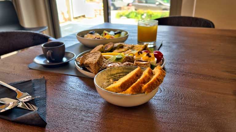 Das tägliche Frühstück wird in Buffetform angeboten und umfasst vegetarische sowie vegane Optionen.