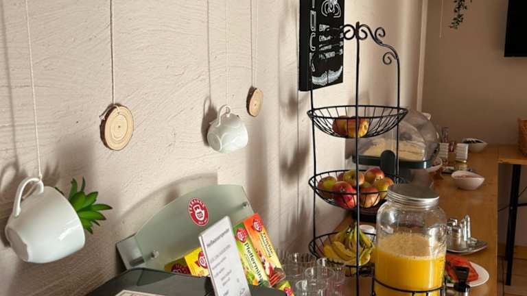 Jeden Morgen wird ein Frühstück angeboten, das als Buffet vegetarische und vegane Optionen umfasst.